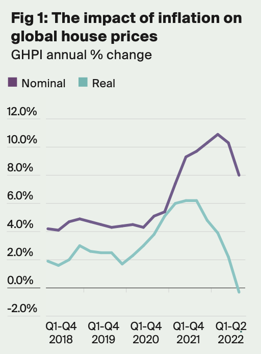 Global house prices continue to rise, but are falling in real terms