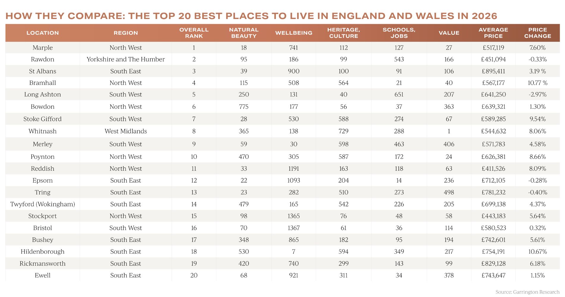 Greater Manchester town tops Garrington’s annual rundown of 1,447 locations.