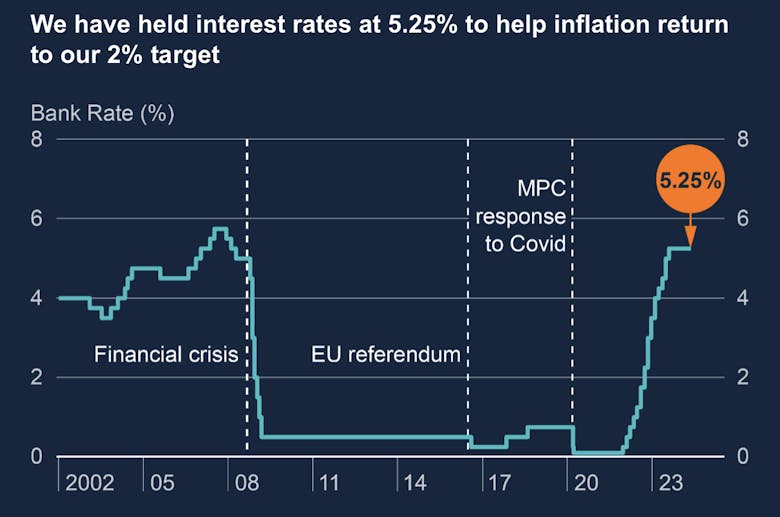 The latest inflation figures are 'encouraging,' says the Bank of England, 'but we are not yet at the point of cutting interest rates.'