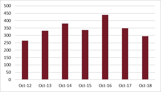 Transaction numbers sank to their lowest ebb in a decade in 2018, after a 14% year-on-year decline...