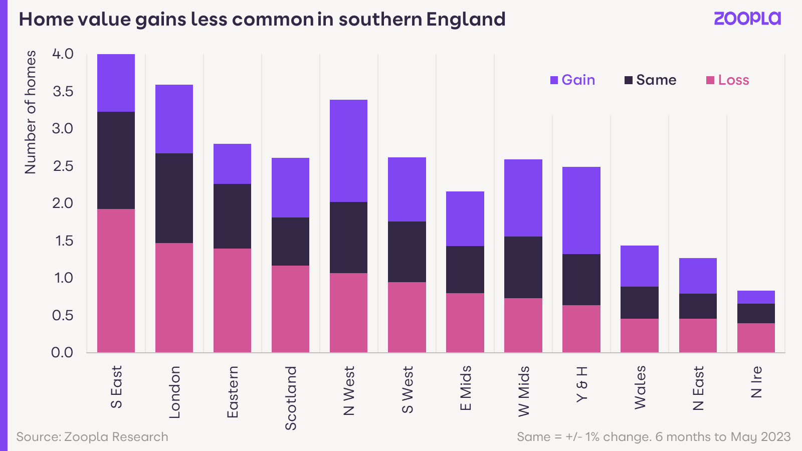 'The risk of a major collapse in house prices is becoming less of a concern,' says Zoopla, although some areas could see a 5% decline next year.