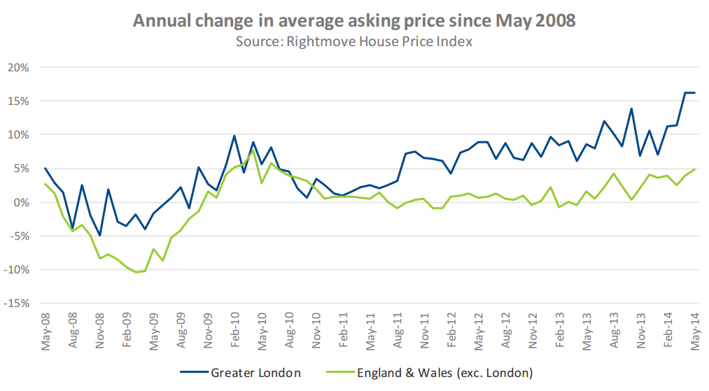 Average house prices across the UK increased by 10.5% in the year to May 2014, according to the latest ONS stats. That's up from an increase of 9.