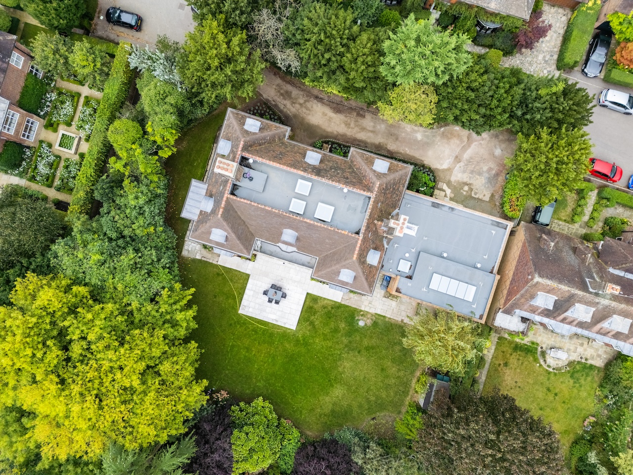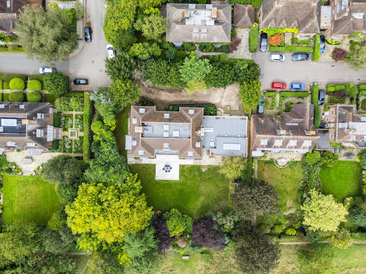 - Located within green space (front and rear gardens, directly adjacent to Hampstead Heath) within sub-urban residential area