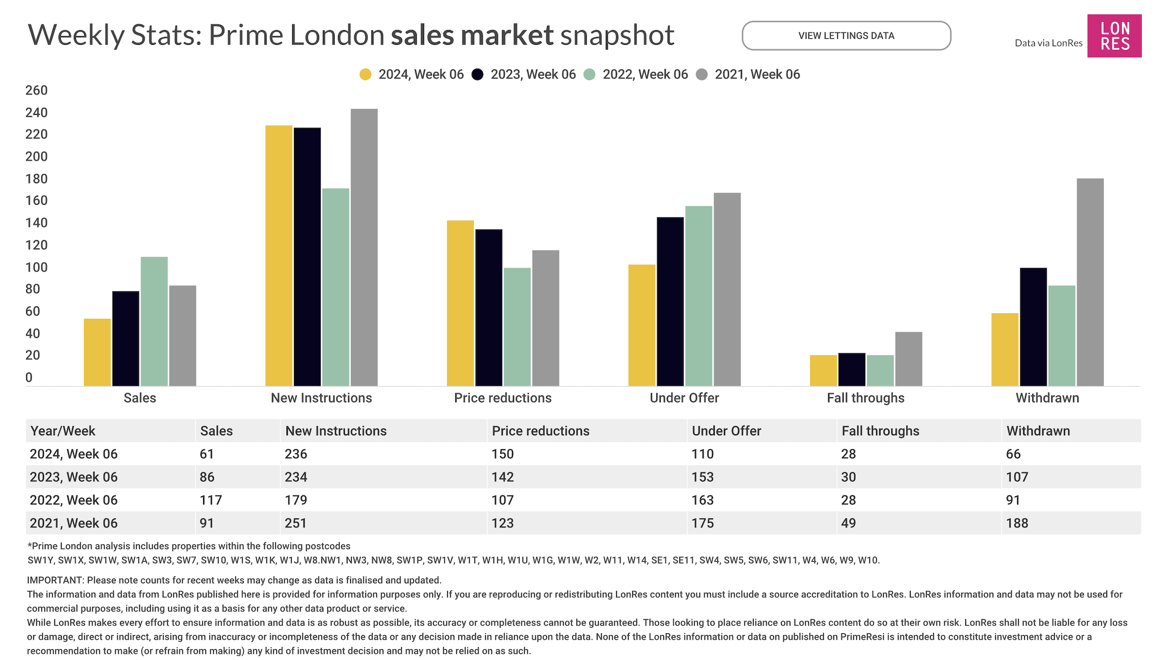 21% fewer sales have been agreed in prime London so far this year, compared to the same five-week period in 2023.