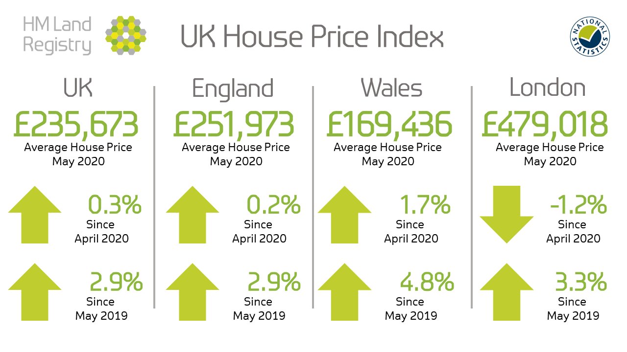 The average UK house price increased by 2.9% over the year to May 2020, up from 2.7% in April, according to the latest official UK HPI update.