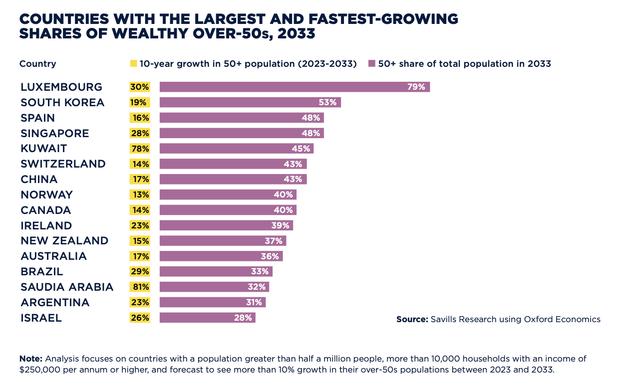 "Populations that are getting older also tend to be getting wealthier," says Savills as it highlights implications for residential markets around the world.