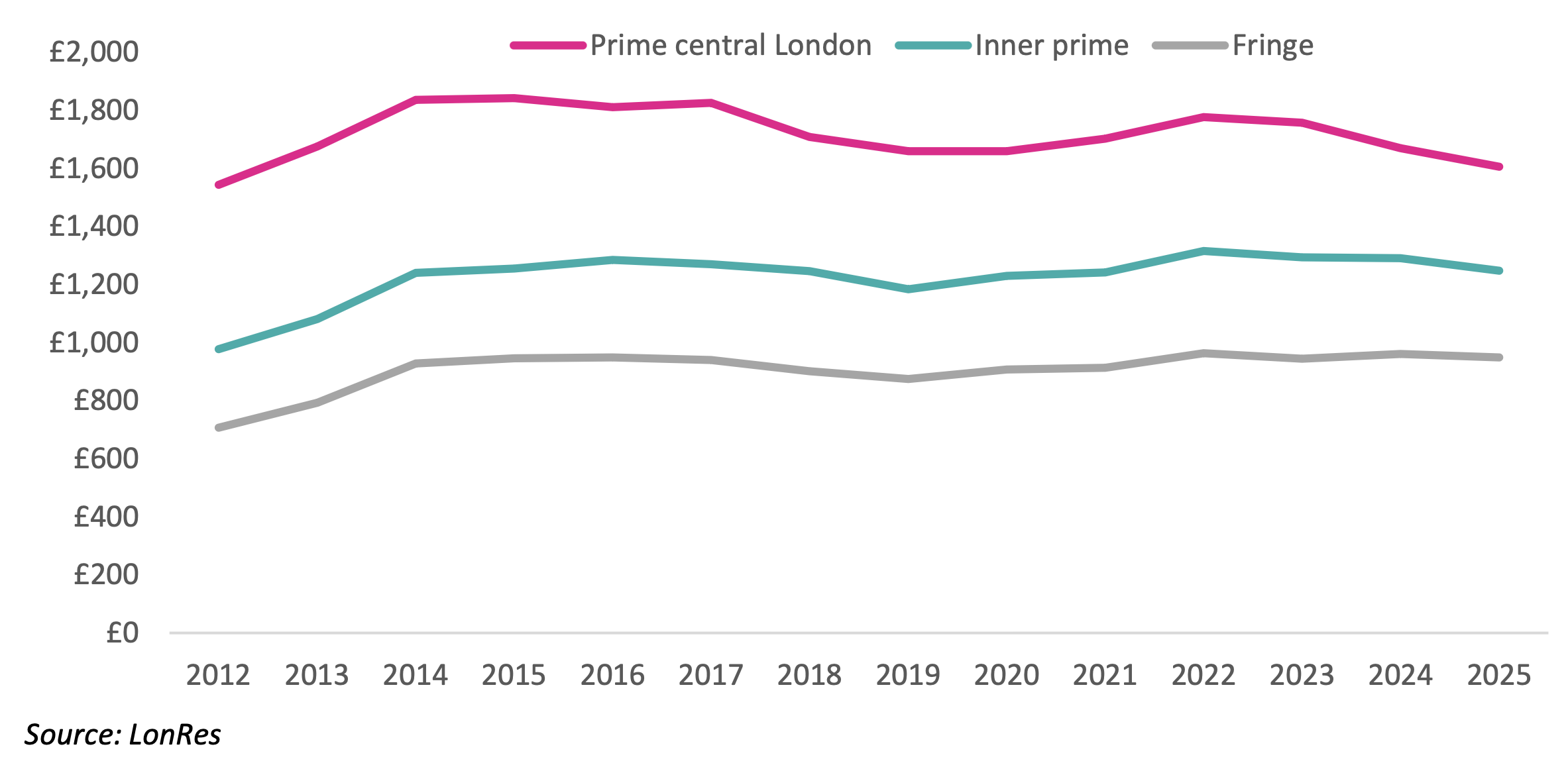 Rising supply and dwindling demand are keeping values under pressure in the capital's most exclusive postcodes, reports LonRes.